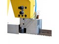 The European made BMSY-440DGH dual mitre up to 60°, semi-automatic band saw can cut a large 600 x 440mm rectangle. This saw can also cut up to 440mm round material at 90° and with a hydraulic clamping mechanism that allows the operator to change the mitre angle in seconds. The inverter controlled infinitely variable speed is easily adjusted to suit desired blade speed via the control dial mounted conveniently on the control panel. The vice uses a full stroke hydraulic clamping system and after the cut is complete the blade stops and the head lifts to the start position ready for the next piece to be cut.