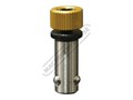 Insert the Ball Lock Bolt over the fixturing element to be mounted on the tabletop. Turn the knurled head with your hands, for initial positioning. The Ball Lock Bolt system consists of three locking steel balls in the bolt shank that move outward to lock against the bottom chamfer of the table plate, pulling the fixture components securely downward and tightening them in place.
