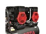 2x heavy duty 1.5Kw (2HP) Motors designed with a wide mouth crank case to fit an oversized fan generating more air volume and better cooling for the Motor Cylinders Pistons and Valves than conventional belt driven compressors