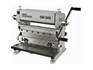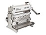 A compact three-function sheet metal working machine which will shear, roll and bend thin sheet material up to a maximum width of 300mm. The handle operates all three functions at the same time, but only one function can be used at one time - the rolls incorporates wiring grooves and are rotated directly whilst the bending and shearing functions operate via an eccentric cam. The pressbrake bending dies can be removed in sections to allow for partial bends to be formed and the top roll can be removed completely when forming closed cylinders. The maximum thickness capacity of 1mm for mild steel & 1.5mm for soft grade aluminium, This compact machine is perfect on small jobs and low production runs for the home engineer's workshop.