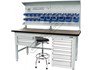 To complete the package a 6 drawer & 2 drawer tooling cabinets designed to fit underneath the bench is another addition as well as a stool. Featuring a range of plastic boxes in the top drawer it would be ideal for the storage of small parts such as screws etc. The lower drawers incorporate movable steel dividers which allow you to configure the space to suit your application
