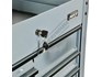 This great tool storage unit also has 2 internal screwdriver bays on both left & right side of the top compartment, key lockable top lid with mechanical drawer lock system that operates with the opening and closing of the lid. There also is plenty of storage below with a huge base shelf to hold larger items. This service tool cart is ideal for any workshop or home garage.