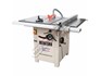 The cast iron table provides great strength and rigidity as well as a smooth user-friendly working surface. The micro adjustable rip fence is full length and cam locked solidly onto rails at the front and back of the table and can be used both sides of the blade. A mitre guide included slides in a T-slot grooves in the table on either side of the blade. Both the blade height and tilt controls have large handles that are conveniently located on front & side of the table saw.